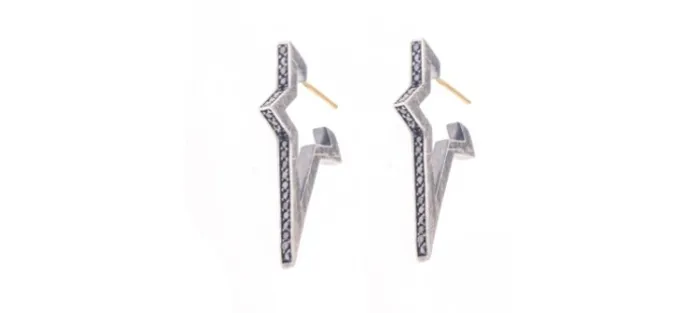 Pendientes de plata envejecida de primera ley (925) y diamantes color coñac. (Perno en oro amarillo de 18 Quilates). Peso total de los diamantes: 0,78 Quilates.