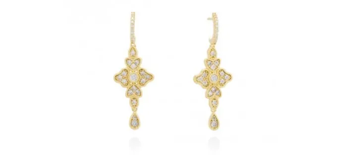 Pendientes de plata de primera ley (925) chapada en oro amarillo de 18kt con circonita blanca. (largo: 5 cm.)