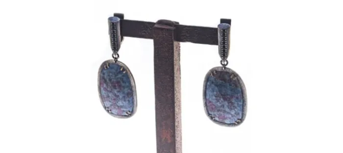 Pendientes de plata envejecida de primera ley (925), espinelas negras y Zoisita.