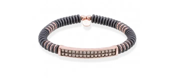 Pulsera de plata de primera ley (925) chapada en oro rosa de 18kt con circonita coñac y hematites. (medida de muñeca: 16,5 cm.)