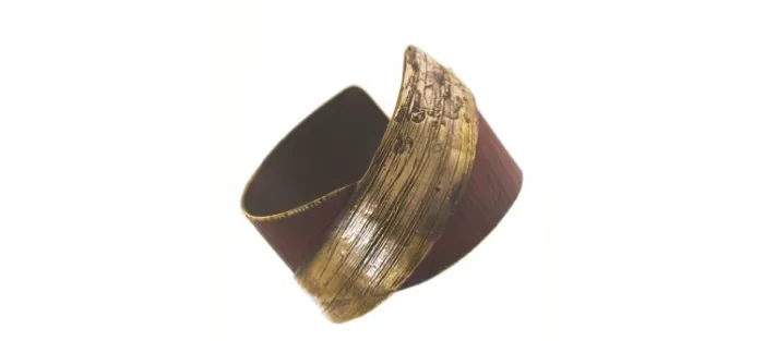 Pulsera de autor fabricada en bronce. Anchura maxima 5,5 cm.