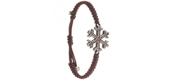 Pulsera de plata envejecida (925) con circonitas marron y cordón trenzado de nylon náutico. Cierre mediante nudo corredizo ajustable al tamaño de cada muñeca.