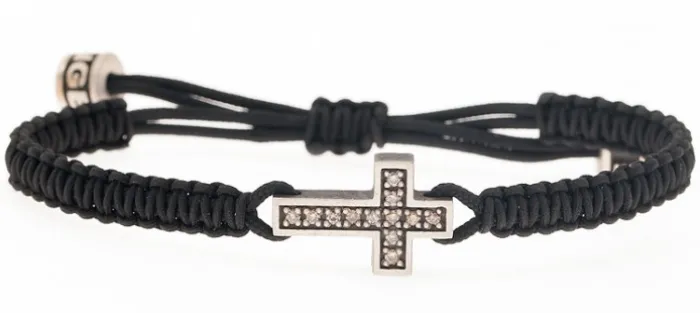 Pulsera unisex de plata envejecida de primera ley (925), 12 diamantes coñac de 1.40mm y 0.18 Quilates y nylon náutico (muy resistente).