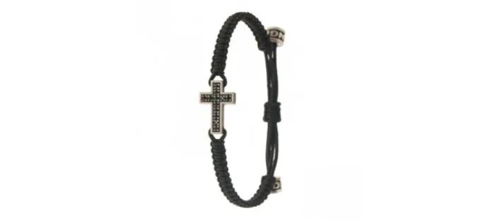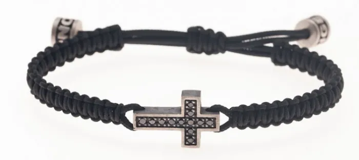 Pulsera de plata envejecida de primera ley (925), 12 diamantes negros de 1.40mm y 0.19 Quilates y nylon náutico (muy resistente).