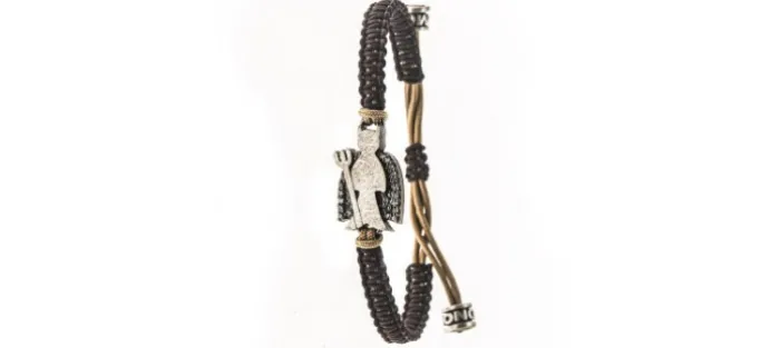 Pulsera de plata envejecida de primera ley (925), diamantes coñac y nylon náutico (muy resistente). Peso aproximado de las piedras 0,31 Quilates.