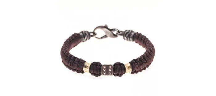 Pulsera unisex de nylon náutico (muy resistente), con pieza de plata envejecida de primera ley (925), 14 diamantes coñac de 1,6 mm con un peso aproximado de 0,27 cts. y una pieza de oro de 18 Quilates a cada lado.