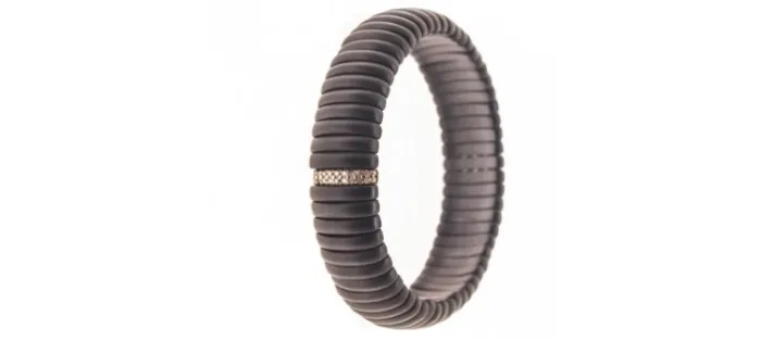 Pulsera cerámica elástica de color negro mate con diamantes en color coñac y oro rosa de 18K.