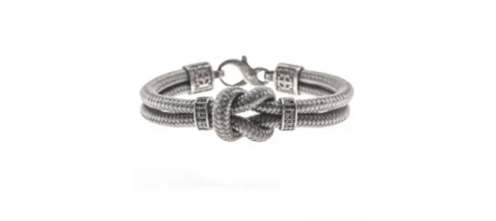 Pulsera unisex de plata envejecida de primera ley, diamantes negros y nylon (gris). (Peso aproximado de los diamantes: 0,41 cts)