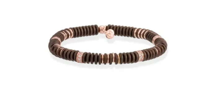 Pulsera de plata de primera ley (925) chapada en oro rosa de 18kt con circonita blanca y hematites con baño marrón. (medida de muñeca: 17,5 cm.)