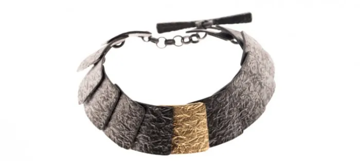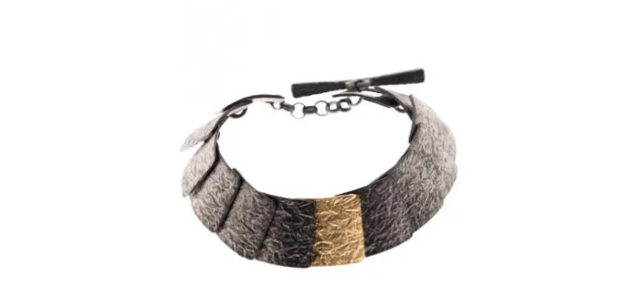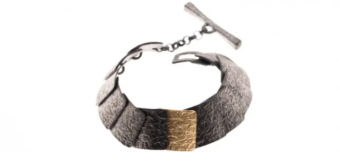 Pulsera de plata envejecida de primera ley (925) y oro amarillo texturado mate de 18 Quilates.