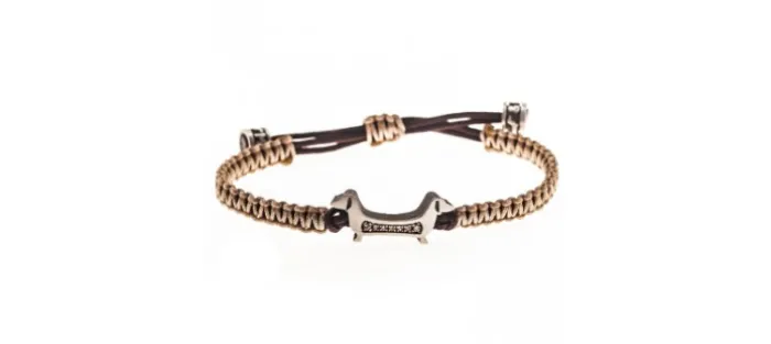 Pulsera de plata envejecida de primera ley (925) con diamantes color coñac y nylon náutico (muy resistente). Color: Crema. Cierre mediante nudo corredizo ajustable de medida.