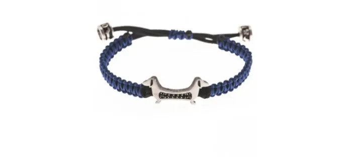 Pulsera de plata envejecida de primera ley (925) con diamantes negros y nylon náutico (muy resistente). Color: Azul. Cierre mediante nudo corredizo ajustable de medida.