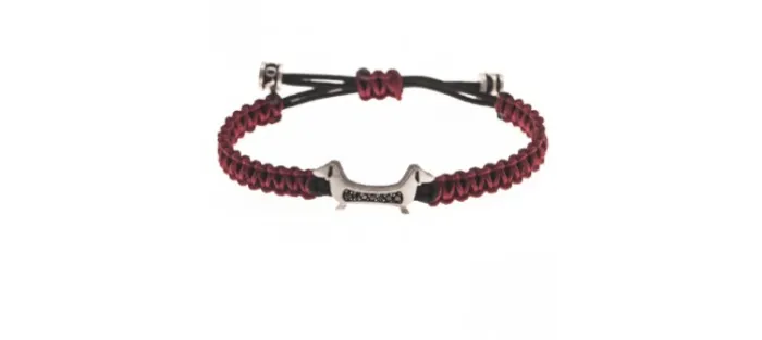 Pulsera de plata envejecida de primera ley (925) con diamantes negros y nylon náutico (muy resistente). Color: Granate. Cierre mediante nudo corredizo ajustable de medida.