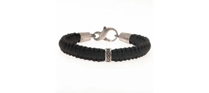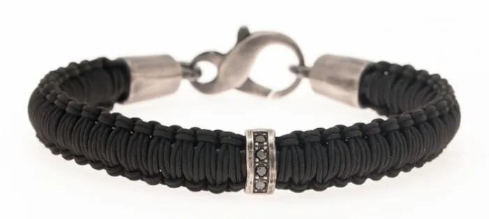 Pulsera unisex de nylon náutico (muy resistente), con pieza de plata envejecida de primera ley (925), 4 diamantes negros de 2mm y 0.14 Quilates.