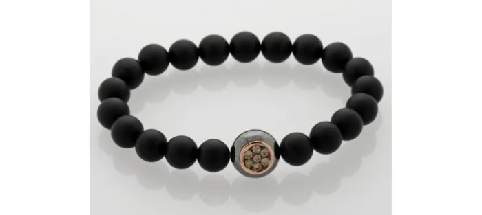 Pulsera de onix, Plata, oro rosa y diamantes.