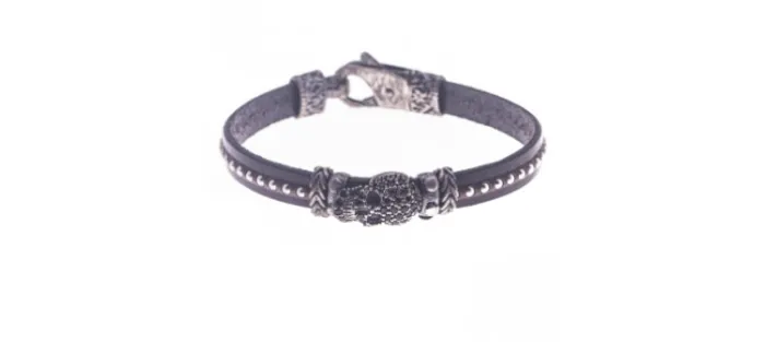 Pulsera de plata Calavera y Cuero.