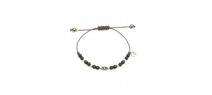 Pulsera de macramé con hematites, bolas de plata de 3mm con baño de oro rosa y con circonita en el centro.