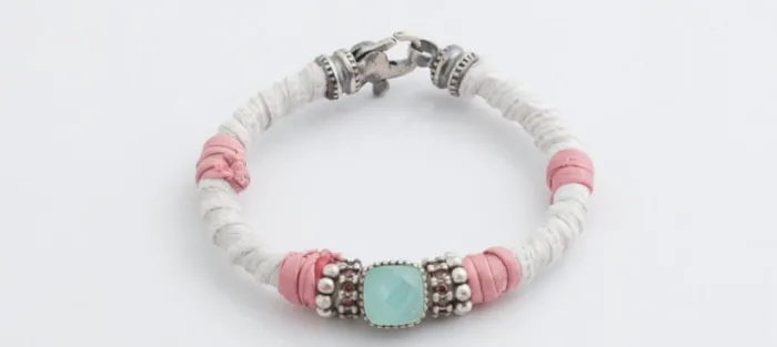 Pulsera plata envejecida de primera ley (925) y seda con piedras naturales.