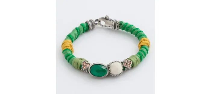 Pulsera plata envejecida de primera ley (925) y seda con piedras naturales.