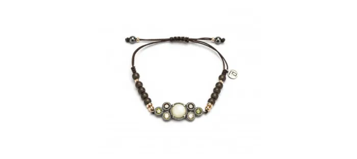 Pulsera de macramé con bolas de plata de 3mm bañadas en oro rosa, hematites y circonitas con perla en el centro.
