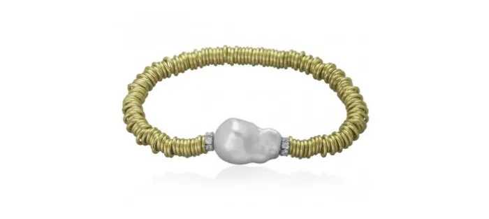 Pulsera de plata de primera ley (925) con baño dorado, circonitas y perla.