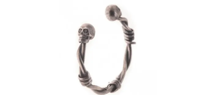 Pulsera rígida de plata envejecida de primera ley (925) y cuatro brillantes negros con un peso aproximado de 0.55Cts.