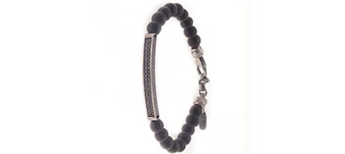 Pulsera unisex de plata envejecida de primera ley (925), ébano y diamantes negros. Peso aproximado de los diamantes: 0,63 Quilates.