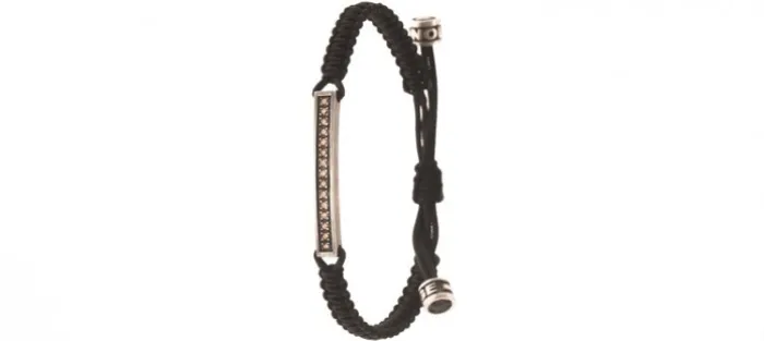 Pulsera unisex de plata envejecida de primera ley (925), 15 diamantes coñac de 1.40mm y 0.22 Quilates y nylon náutico (muy resistente).
