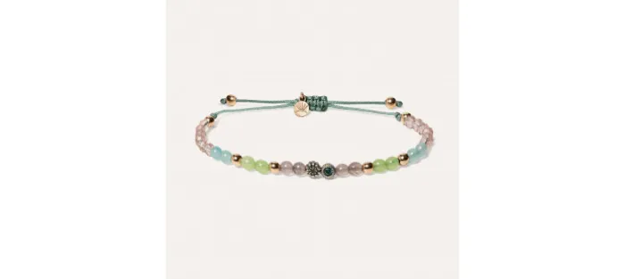 Pulsera en plata de ley 925 con ágatas, cuentas de cristal, circonitas y nylon.