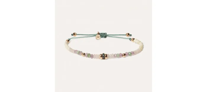 Pulsera en plata de ley 925 con ágatas, cuentas de cristal, circonitas y nylon.