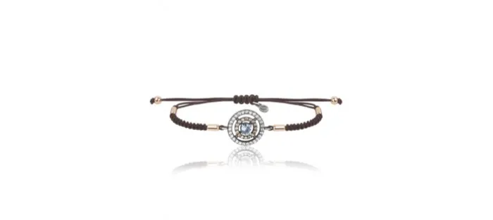 Pulsera de macrame marrón, plata y circonitas.