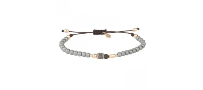 Pulsera de plata de primera ley (925), hematites y circonitas. Cierre con nudo corredizo.