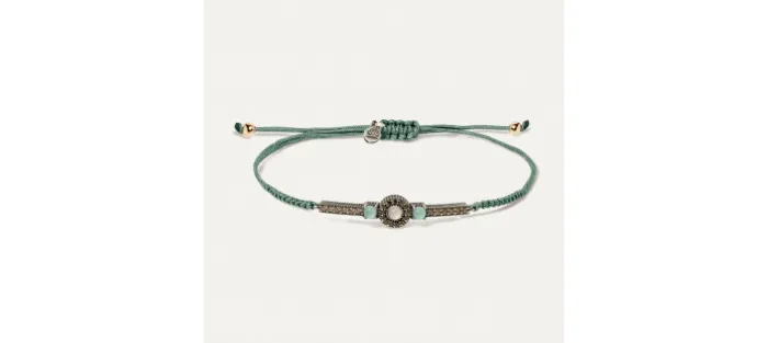 Pulsera de plata de ley 925 con cuarzo, circonitas y nylon.