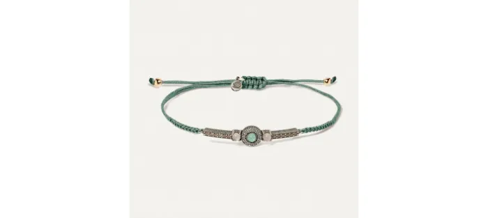 Pulsera de plata de ley 925 con cuarzo, circonitas y nylon.