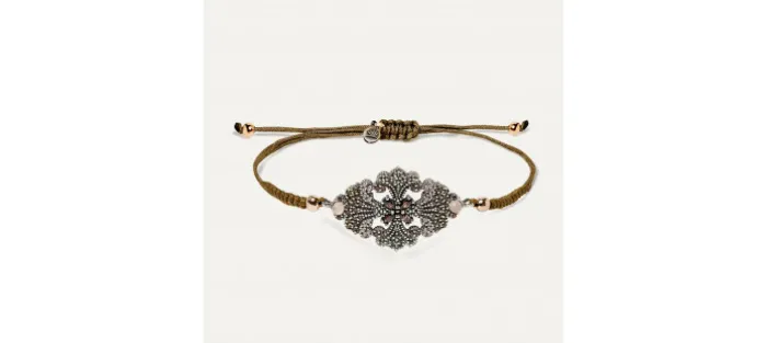 Pulsera de plata de ley 925, cuarzo rosa, circonitas y nylon.
