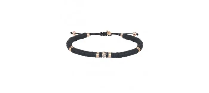 Pulsera de plata y de plata bañada en oro rosa con circonitas champangne talla brillante, caucho y nailon negro.