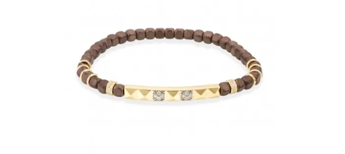 Pulsera de plata de primera ley (925) chapada en oro amarillo de 18kt con circonita blanca y hematites con baño marrón. (medida de muñeca: 17 cm.)