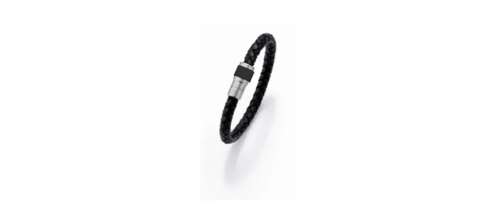 Pulsera Teno de Cuero trenzado y pieza de Acero Inoxidable con cerámica negra incrustada.