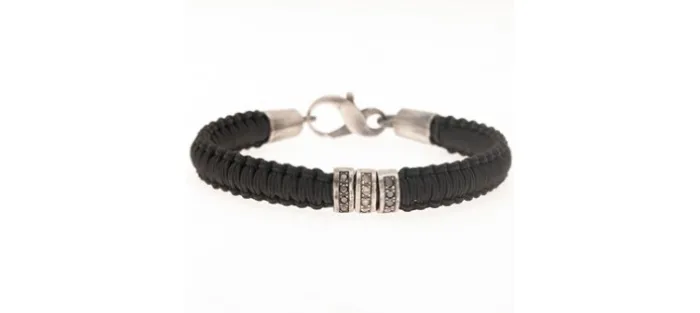 Pulsera unisex de nylon náutico (muy resistente), con pieza de plata envejecida de primera ley (925), 8 diamantes negros y 4 diamantes coñac de 2mm y 0.38 Quilates.