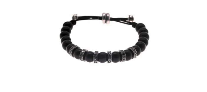 Pulsera de plata envejecida de primera ley (925), ébano, diamantes negros y nylon náutico (muy resistente). Peso aproximado de los diamantes: 1.2 Quilates.