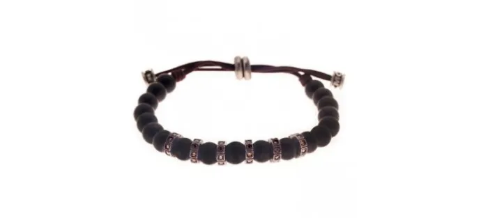 Pulsera de plata envejecida de primera ley (925), ébano, diamantes negros y nylon náutico (muy resistente). Peso aproximado de los diamantes: 1.1 Quilates.