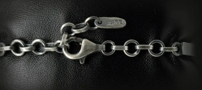 Pulsera de plata envejecida de primera ley (925). Cierre ajustable de medida. Medidas silueta: 25mm X 11,5mm X 3,5mm.