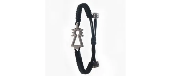 Pulsera de oro blanco de primera ley (750) y nylon náutico (muy resistente). Color: NEGRO. Cierre mediante nudo corredizo ajustable de medida. Medidas silueta: 25mm X 11,5mm X 3,5mm.