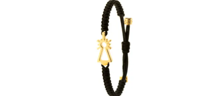 Pulsera de oro amarillo de primera ley (750) y nylon náutico (muy resistente). Color: NEGRO. Cierre mediante nudo corredizo ajustable de medida. Medidas silueta: 25mm X 11,5mm X 3,5mm.