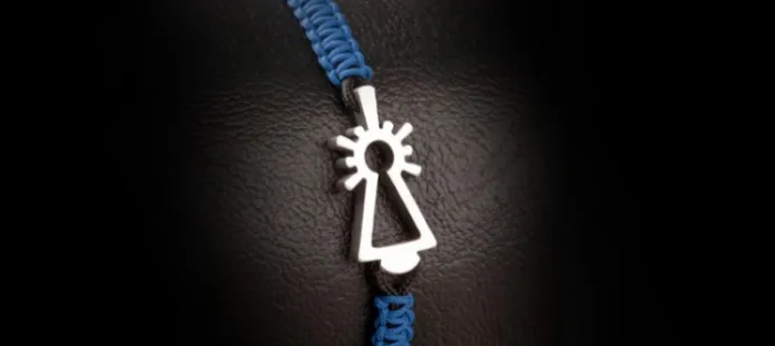 Pulsera de plata envejecida de primera ley (925) y nylon náutico (muy resistente). Color: AZUL. Cierre mediante nudo corredizo ajustable de medida. Medidas silueta: 25mm X 11,5mm X 3,5mm.