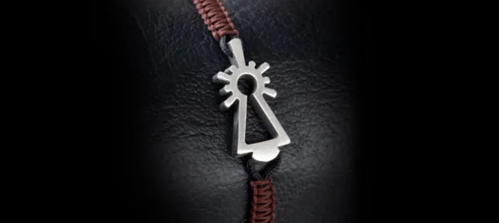Pulsera de plata envejecida de primera ley (925) y nylon náutico (muy resistente). Color: MARRON. Cierre mediante nudo corredizo ajustable de medida. Medidas silueta: 25mm X 11,5mm X 3,5mm.