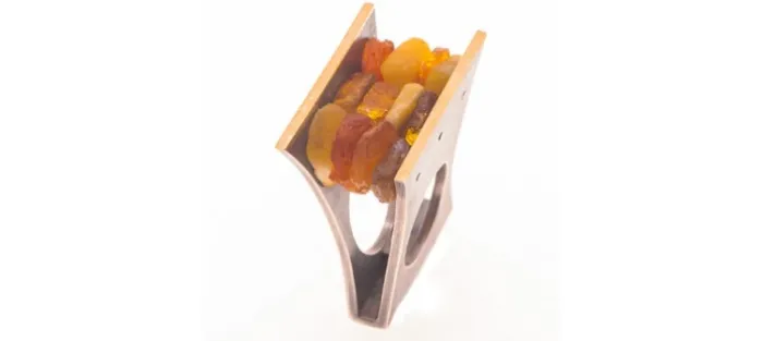 Anillo de plata envejecita de primera ley (925) oro de 18 Quilates y Ambar natural en bruto.