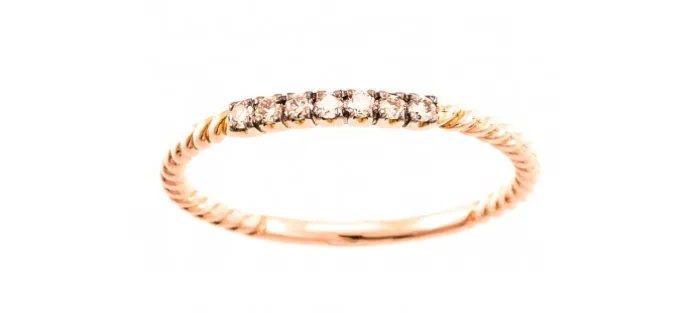 Anillo de oro rosa de ley (750/1000) y 7 diamantes coñac de peso total 0,13qt..